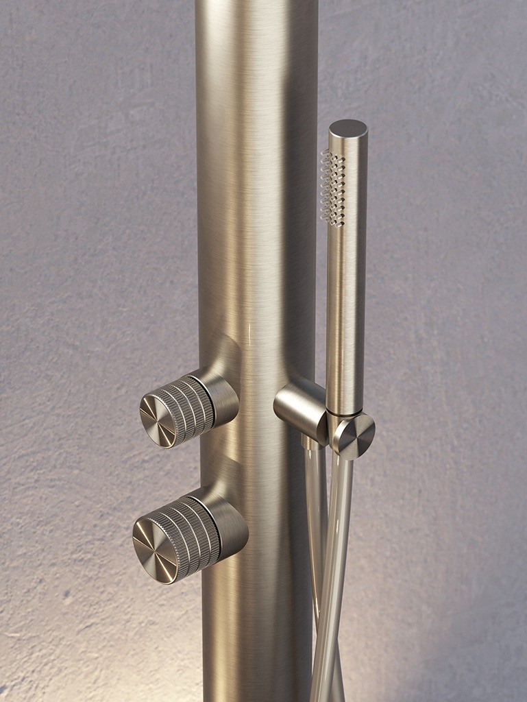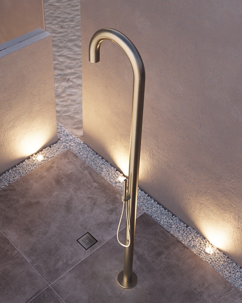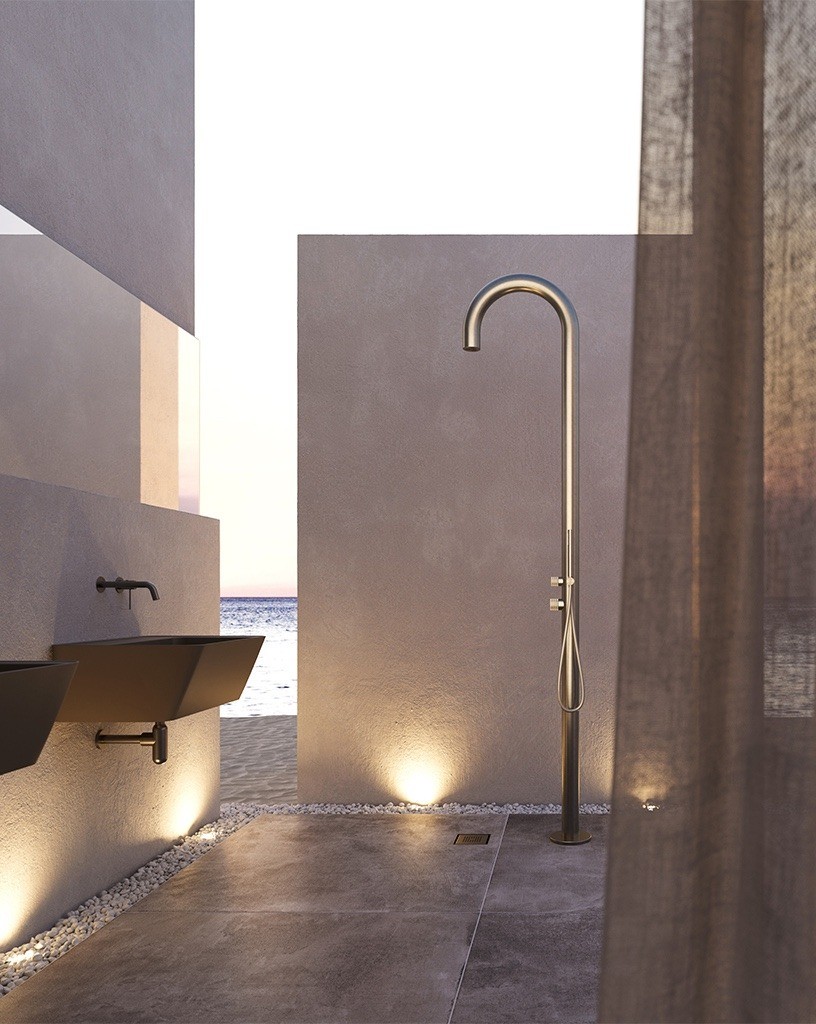 Una forma morbida e delicata, una finitura raffinata. La colonna doccia da esterno Glaudia garantisce funzionalità e pieno controllo del flusso d’acqua. Ingombro minimo, anche visivo, per una facile installazione in ogni ambiente.