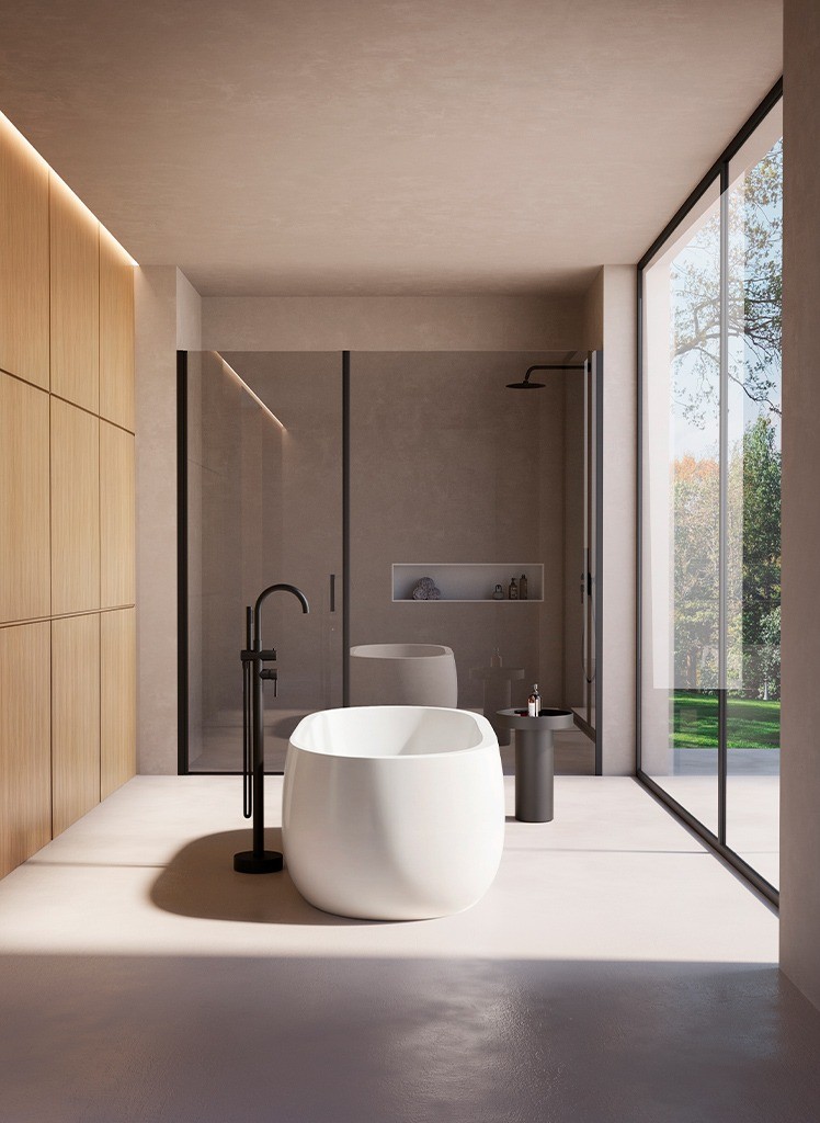 Realizzata in acrilico di alta qualità, assicura resistenza, leggerezza e facilità di manutenzione, offrendo al tempo stesso un elevato comfort durante l’utilizzo. È dotata di piletta up-down e troppopieno integrato nella vasca, per un’estetica pulita e armoniosa.