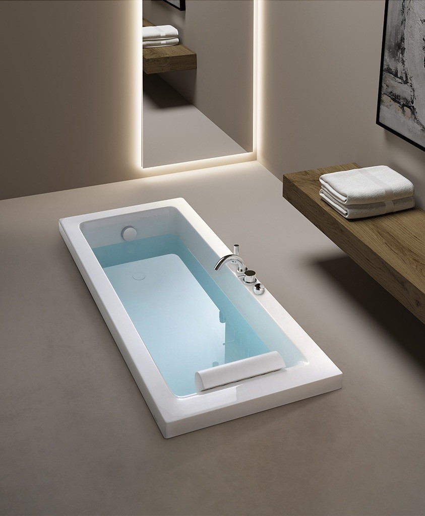Forma tradizionale in due scelte dimensionali. Un modello equilibrato e contemporaneo nei dettagli e nelle finiture, con la possibilità di scelta della versione basic o quella idromassaggio, cromoterapia e airpool. Una forma base per l’esaltazione dei colori tenui dell’acqua nell’azione energizzante della cromoterapia.
