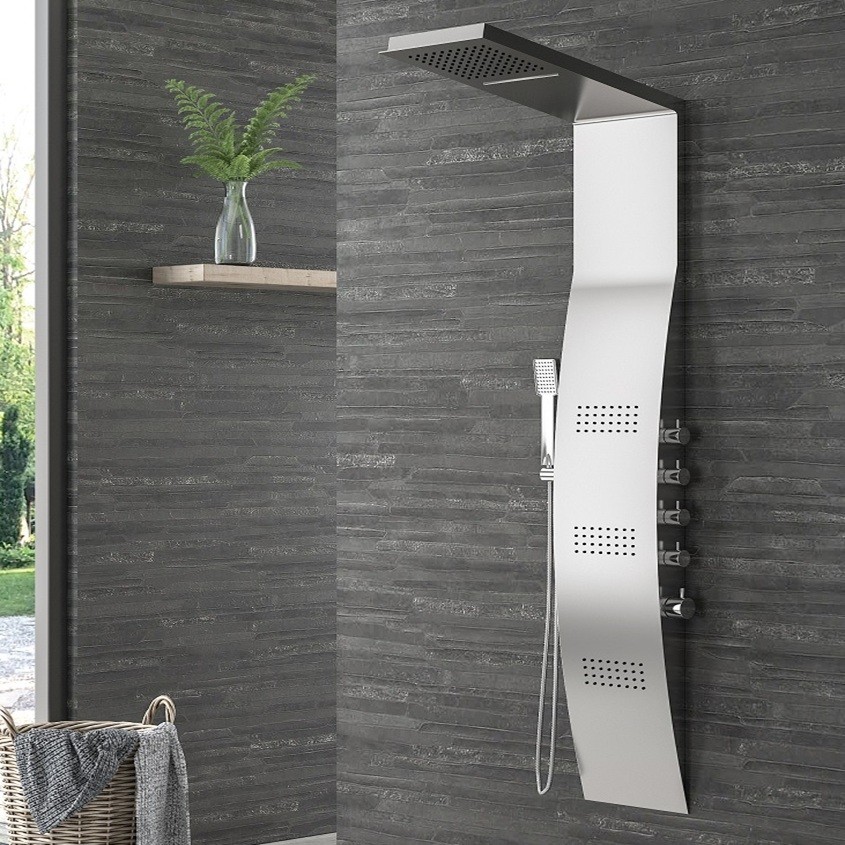 Il soffione superiore effetto pioggia avvolge il corpo con un getto ampio e rilassante, mentre i getti idromassaggio integrati offrono un massaggio piacevole e distensivo, ideale per sciogliere le tensioni e ritrovare equilibrio dopo la giornata. La doccetta manuale completa il sistema, garantendo praticità e flessibilità nell’utilizzo quotidiano.