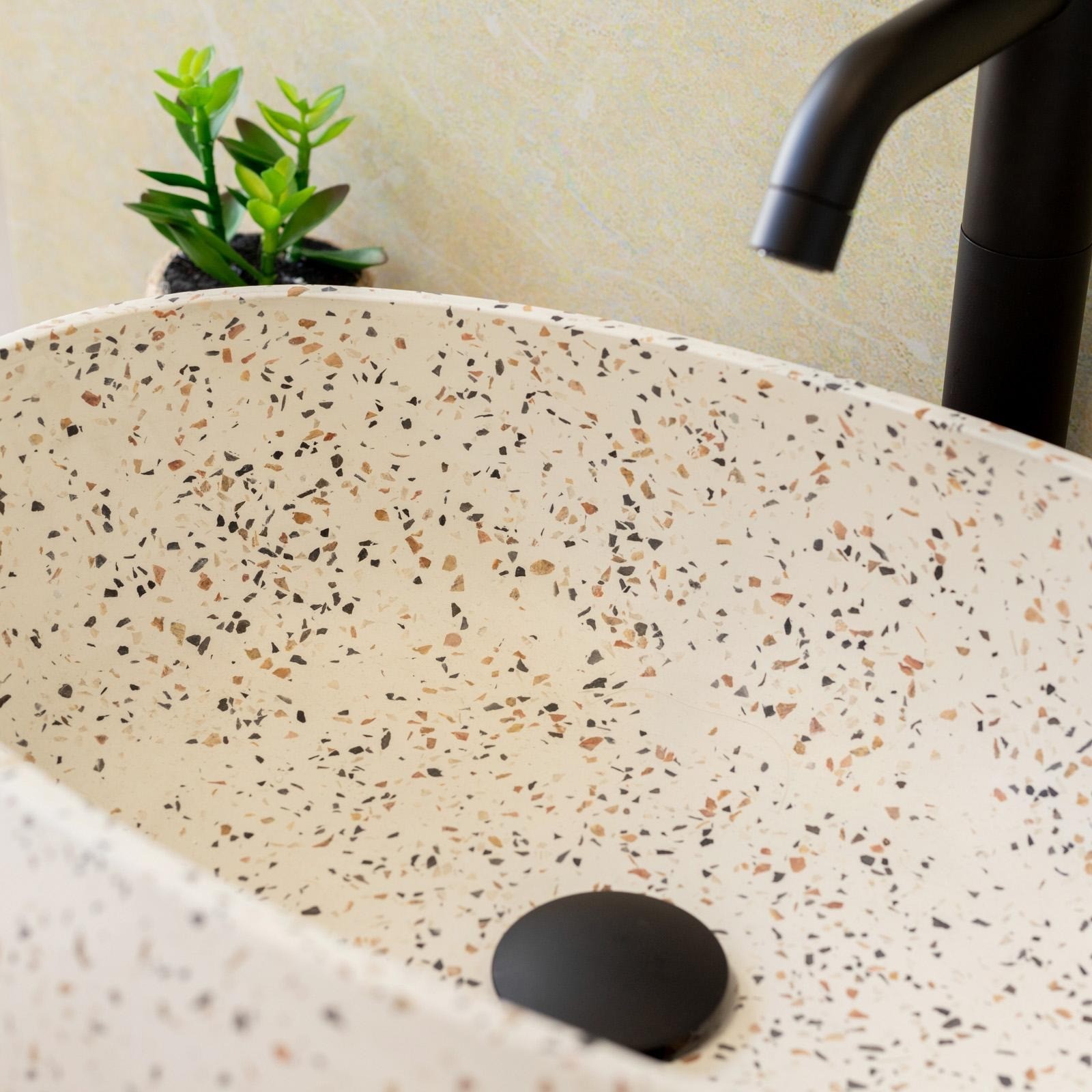 La collezione LINUS TERRAZZO di Karag è la sintesi perfetta tra design minimale e ricerca materica. Ispirata all’eleganza intramontabile del terrazzo, questa linea di lavabi da appoggio si distingue per la sua superficie decorativa unica, capace di donare personalità e stile a qualsiasi ambiente bagno.