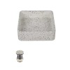 Con la sua forma compatta e geometrica, il lavabo IRA si adatta perfettamente a spazi sia residenziali che professionali, aggiungendo un tocco di carattere grazie alla texture granulare e multisfaccettata del terrazzo.