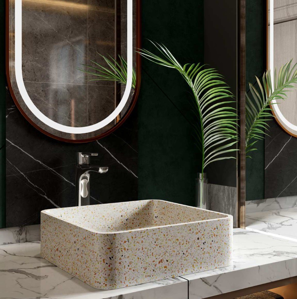 La collezione IRA TERRAZZO di Karag porta nel bagno contemporaneo un connubio raffinato tra design pulito e materiali decorativi di tendenza. Il classico effetto terrazzo viene reinterpretato in chiave moderna, dando vita a lavabi da appoggio che uniscono stile, funzionalità e originalità.